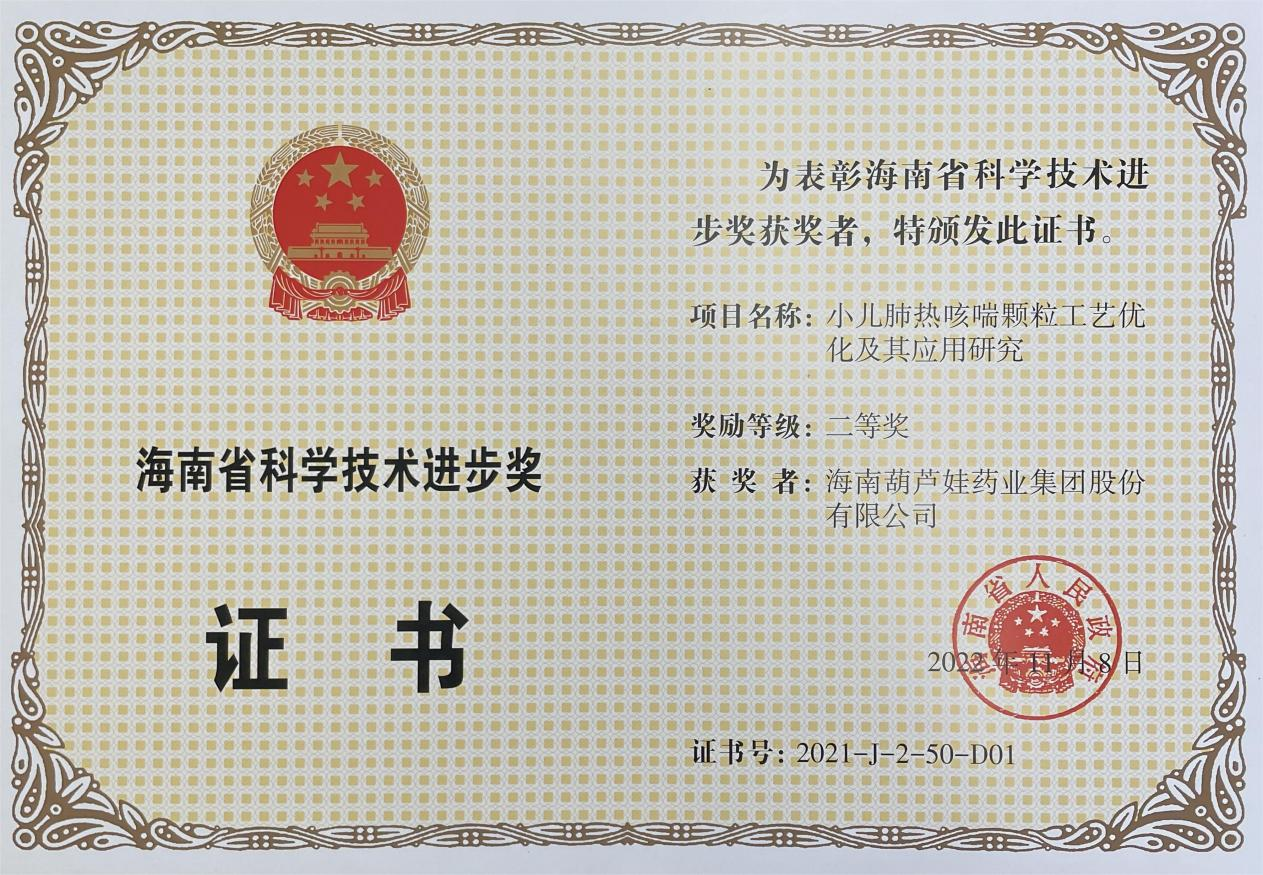 11月15日,海南省科学技术奖励大会在海口召开,揭晓了2021年度海南省科学技术奖。海南财神争霸药业集团股份有限公司凭借“小儿肺热咳喘颗粒工艺优化及其应用研究”,荣获海南省科学技术进步奖二等奖。项目主要完成人有刘景萍、刘全国、胡俊斌、李培湖、刘萍、王家、陈克领、何彦博。