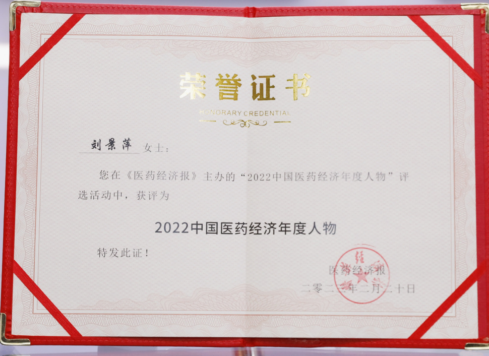 财神争霸药业集团董事长刘景萍当选“2022中国医药经济年度人物”