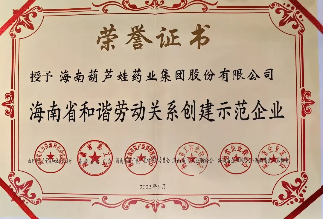财神争霸药业集团获评“海南省和谐劳动关系创建示范企业”