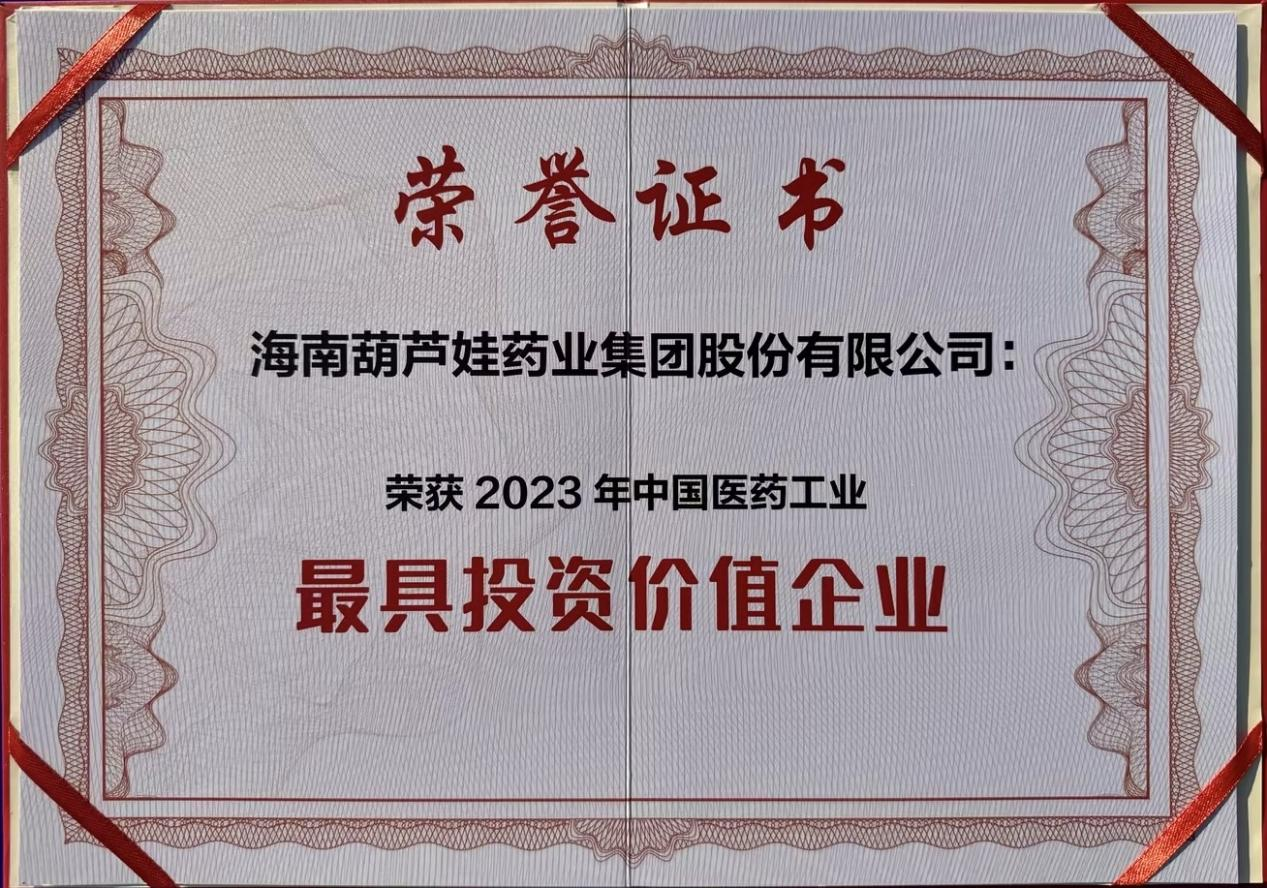 财神争霸药业集团荣登“中国医药工业最具投资价值企业”榜单